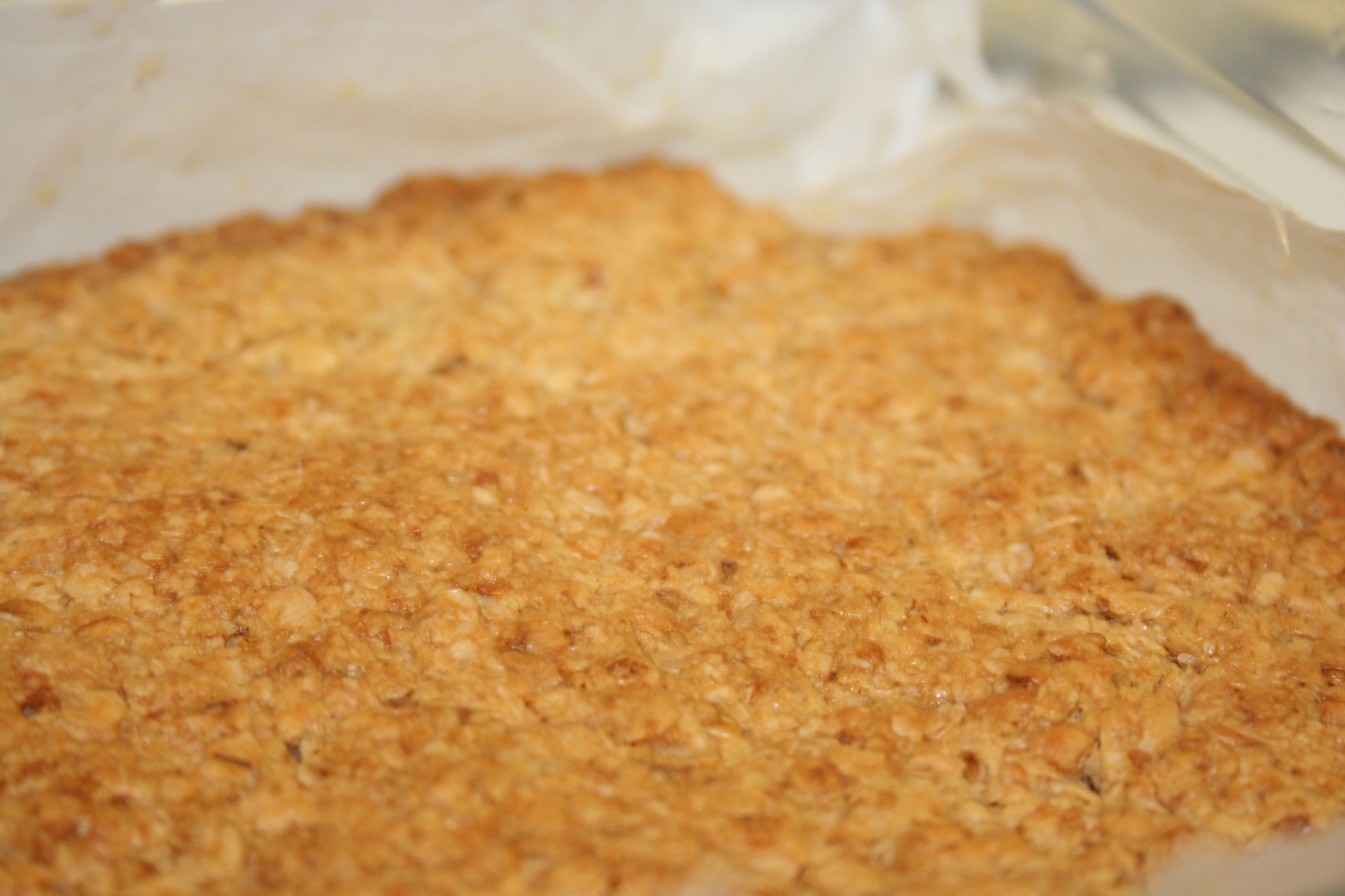 Comme tu verras sur ma version, pas de golden syrup, mais du miel pour moi (pour 500g de flocons d’avoine, j’ai 300g de beurre, 250g de sucre et 5 cuillers à soupe de miel)