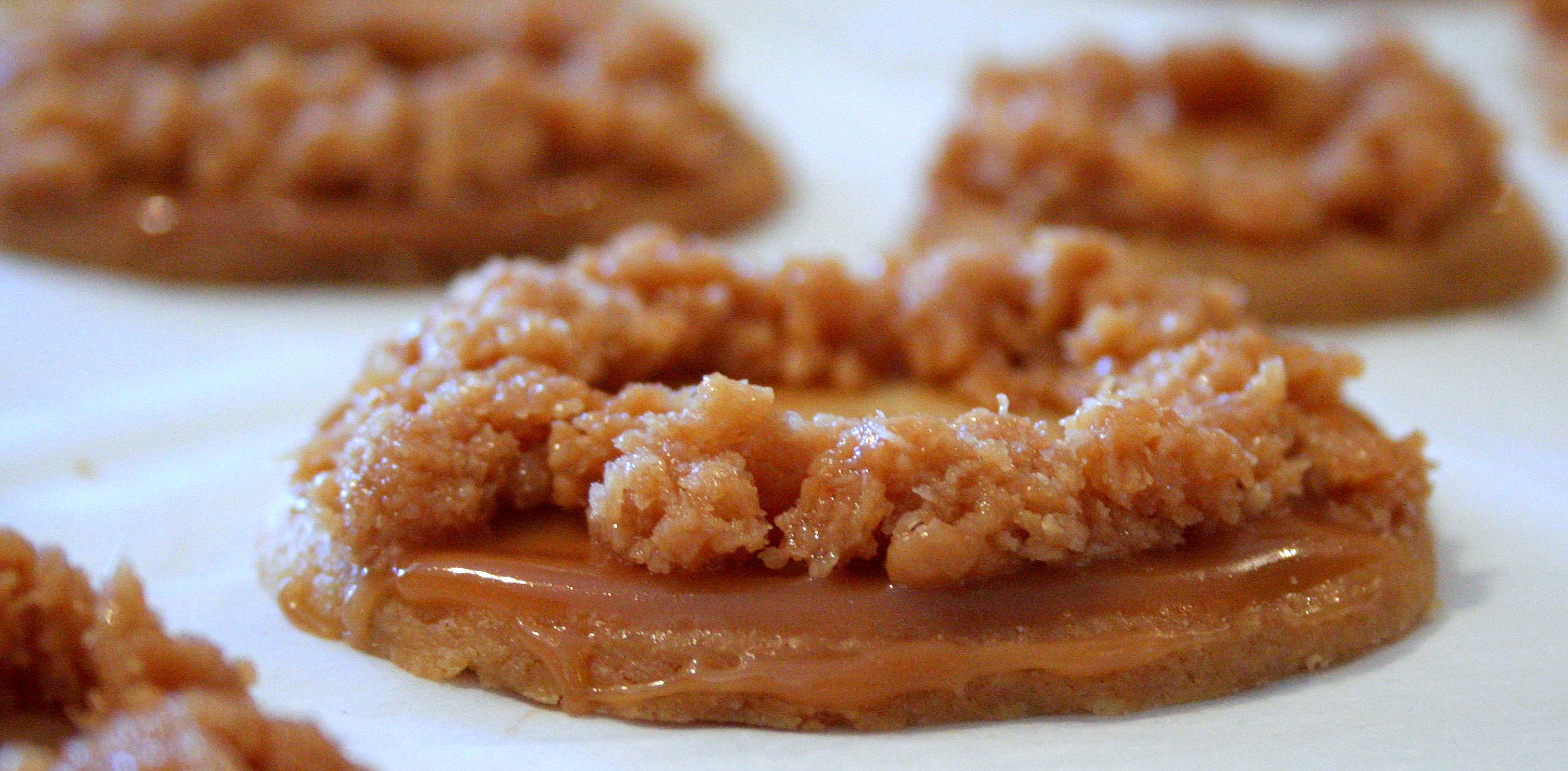 - Déposer un peu de caramel sur le cookie